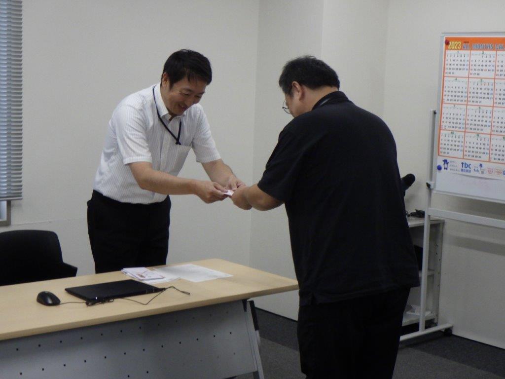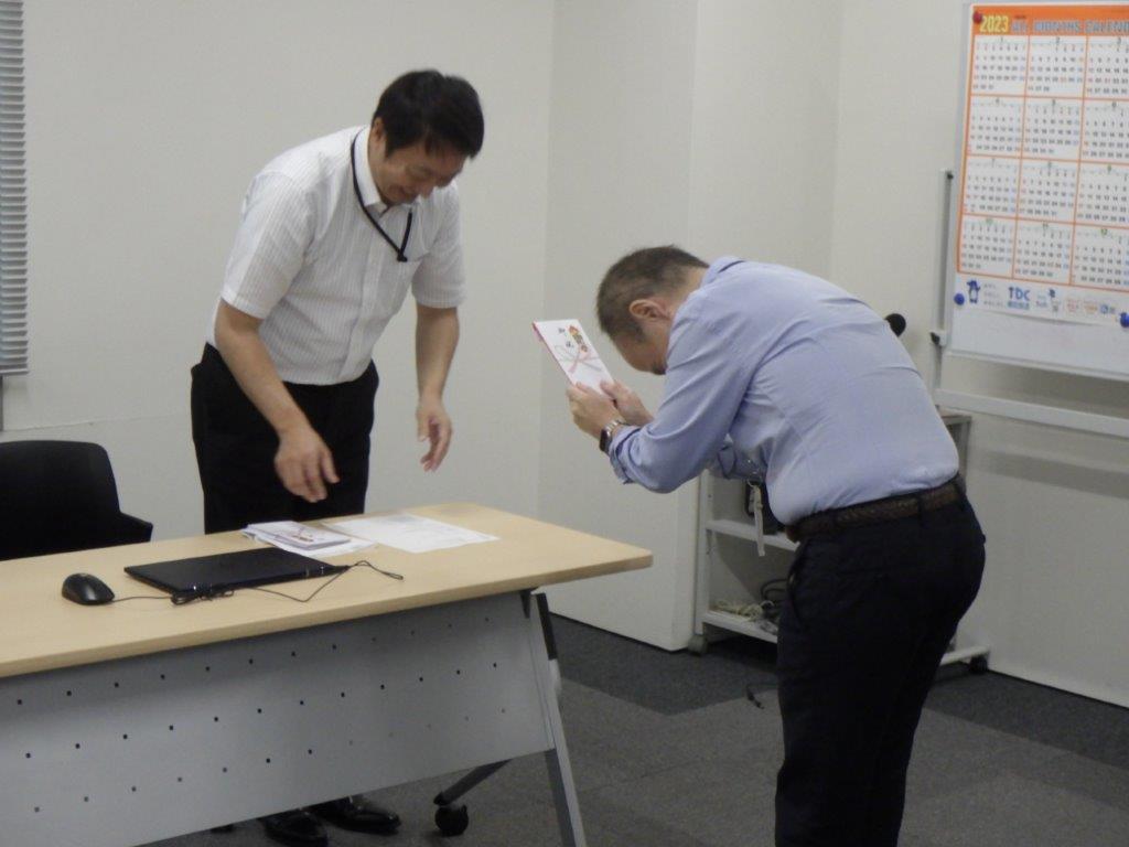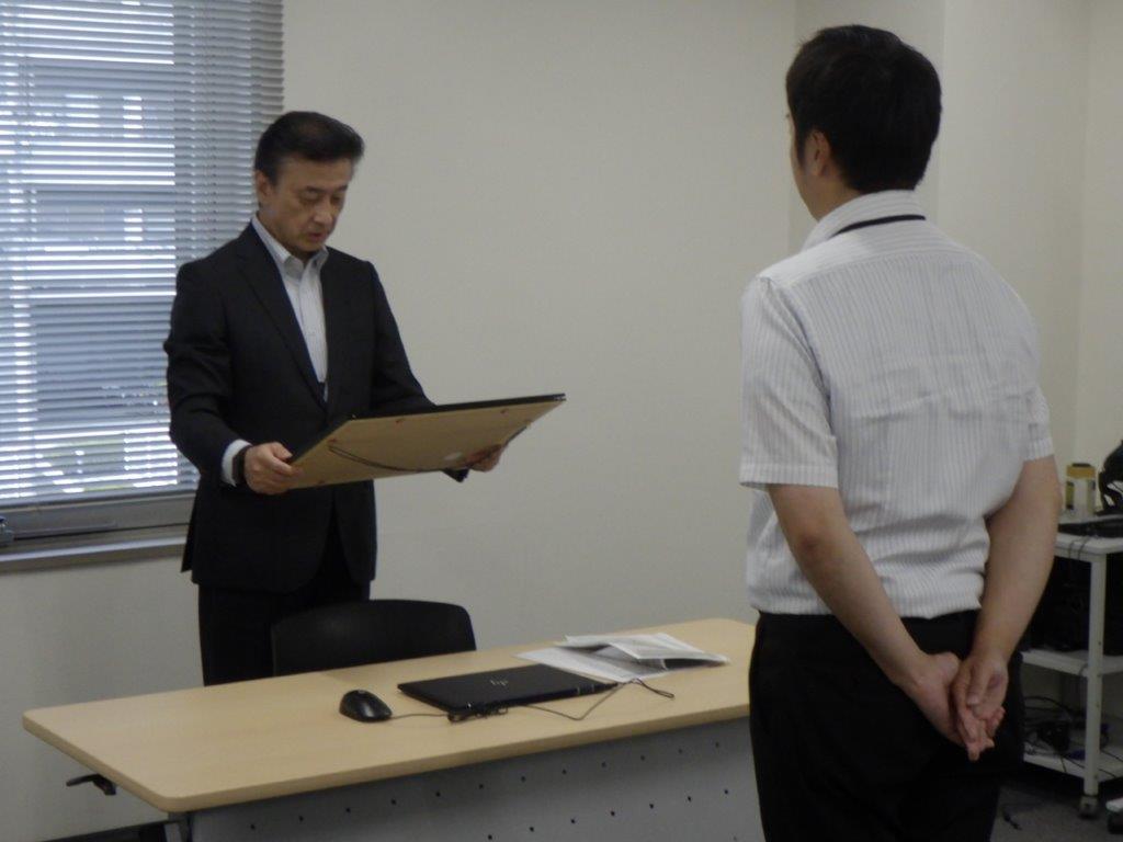 社内表彰では、新技術への対応を行なった方、業務で表彰を受けた方、新技術を開発した方、社会貢献に努めた方、お客様から表彰された方への業績を称え、表彰が行われました。